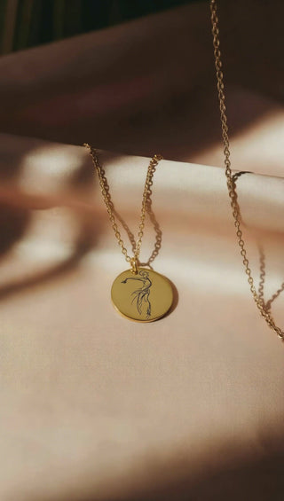 A single, continuous stroke captures the essence of motion in the Flow‑Line Coin Necklace. Laser‑engraved on a slim round pendant, the abstract dancer glides across polished sterling silver or rich 14 k gold‑fill—a quiet tribute to the artistry that lives beneath every practiced breath. Suspended from a fluid fine‑link chain, the piece rests comfortably at the collarbone and keeps its understated sheen from studio drills to late‑night conversations.