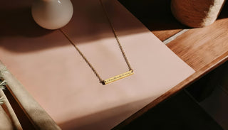 The Guiding Lines Bar Necklace honors the quiet mastery of those who shape our craft. A slim horizontal bar—laser‑engraved in a delicate script with “I’d Rather Be Dancing”—hangs from a fine, fluid link chain in your choice of tarnish‑resistant sterling silver or 14 k gold‑fill. Lightweight yet enduring, it moves as effortlessly as the corrections that refine a dancer’s line.
