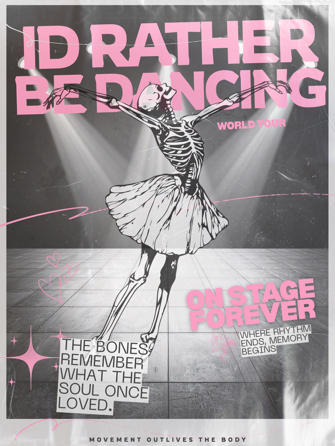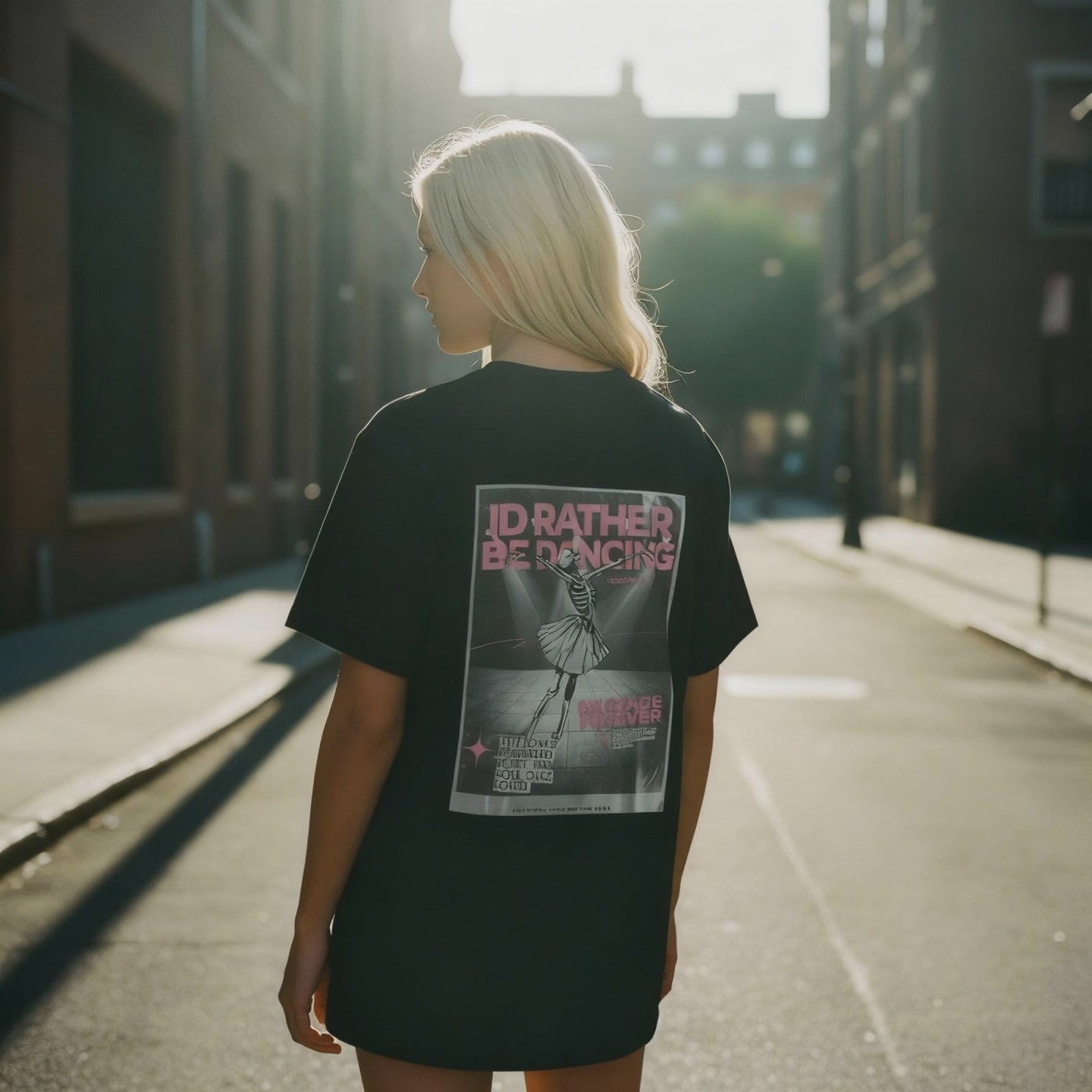 This tee is a love letter to every dancer who’s ever left a little piece of themselves on the stage. Designed like a vintage band shirt, The Bones Still Dance features a haunting ballerina skeleton mid-pose, printed with a soft worn-in feel that looks like you found it in the back of an old tour trunk.