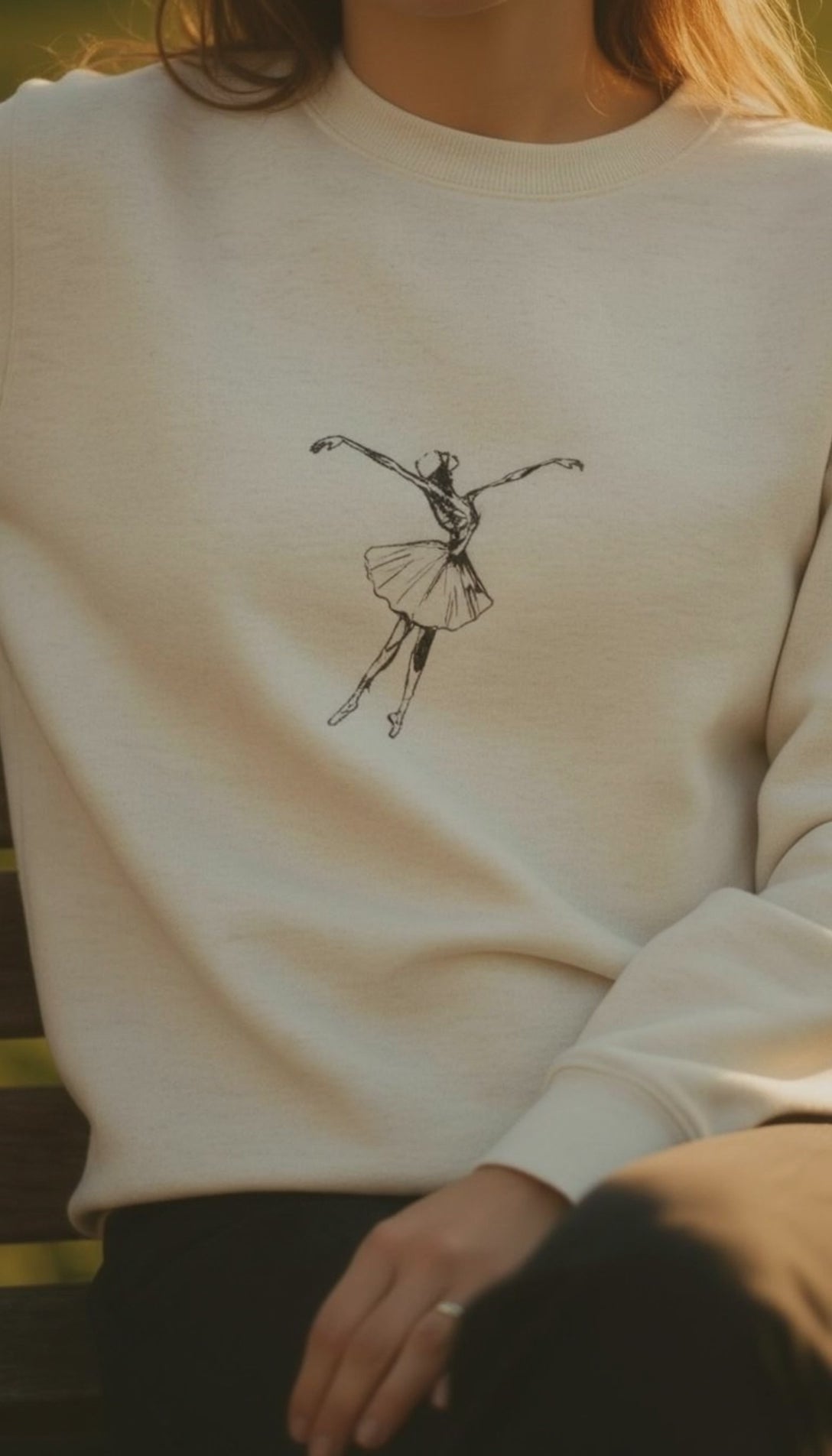 This piece was made for dancers, dreamers, and anyone who carries rhythm in their bones. It’s cozy enough for a studio warm-up, cool enough to wear anywhere, and made to look like it’s already lived a few lives.