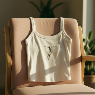 There’s something hauntingly beautiful about this one. A soft, easy-to-wear tank top with a vintage skeleton ballerina detail that feels equal parts eerie and graceful. It’s for the dancer who knows movement never dies, for the dreamer who loves art with a little edge.